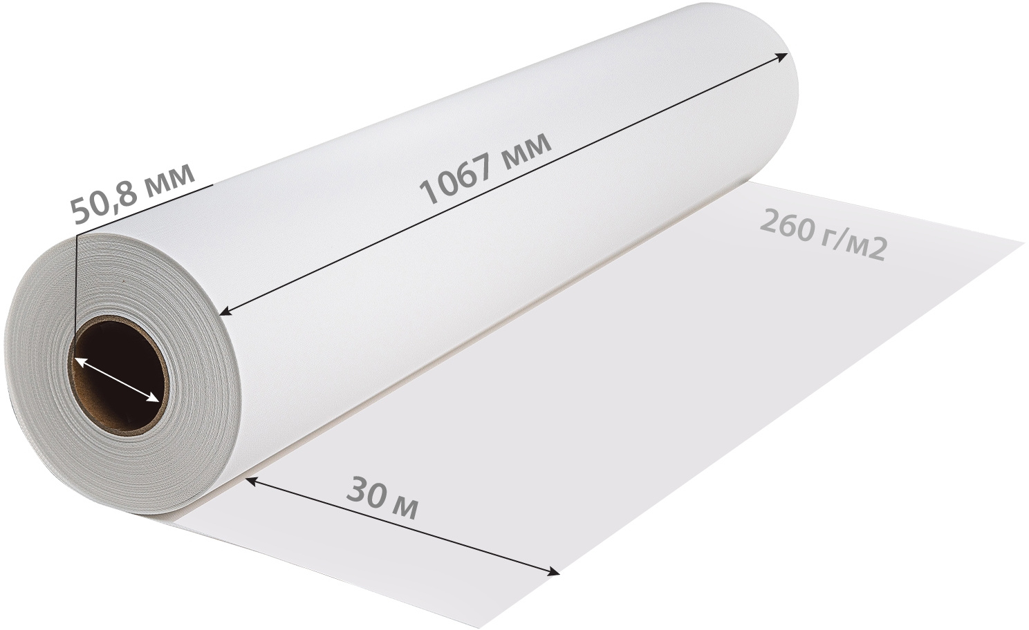 Холст Cactus CS-MC260-106730 42"(A0+) 1067мм-30м/260г/м2/белый для струйной печати втулка:50.8мм (2")