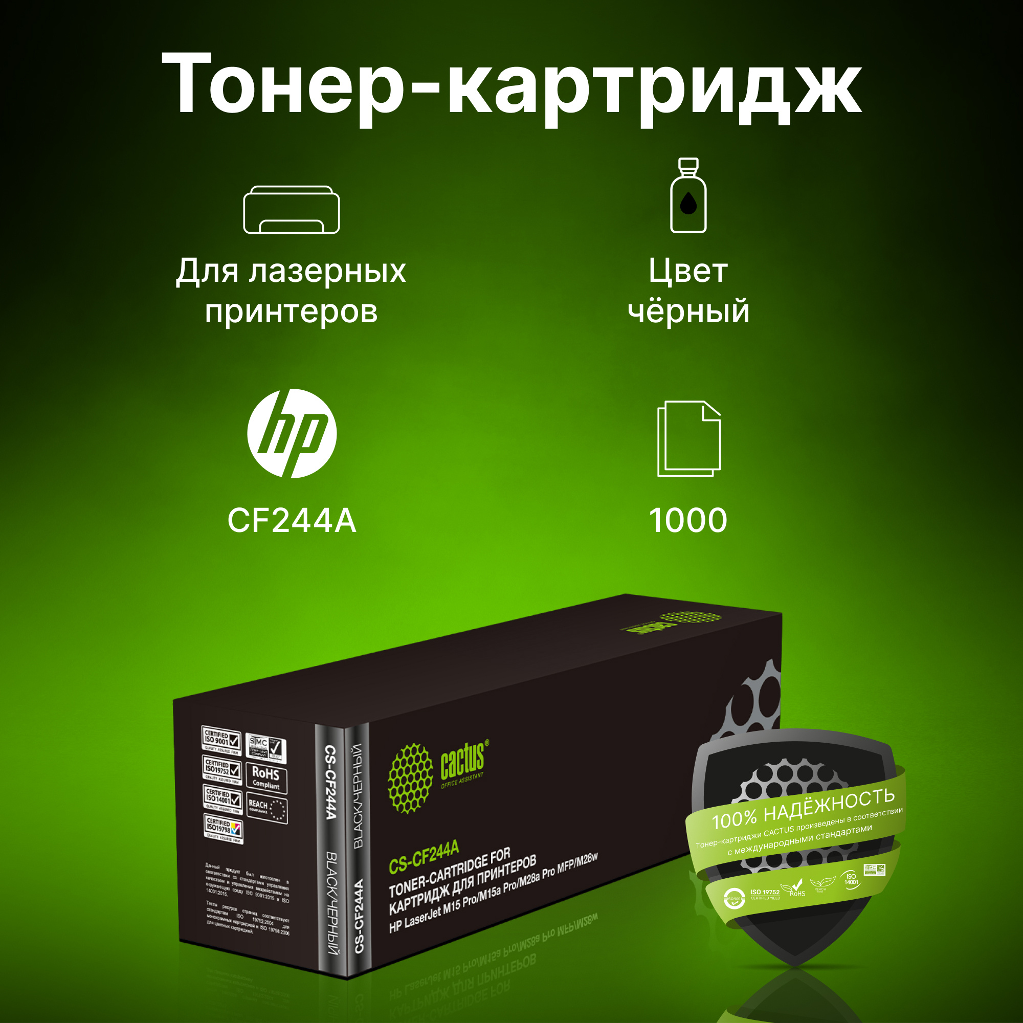 Чип: с чипом Тип: Картридж Назначение: для лазерных принтеров/МФУ Модель оригинального картриджа: CF244A Совместимость с принтерами по моделям: M15a, M15w Производитель печатающих устройств: HP