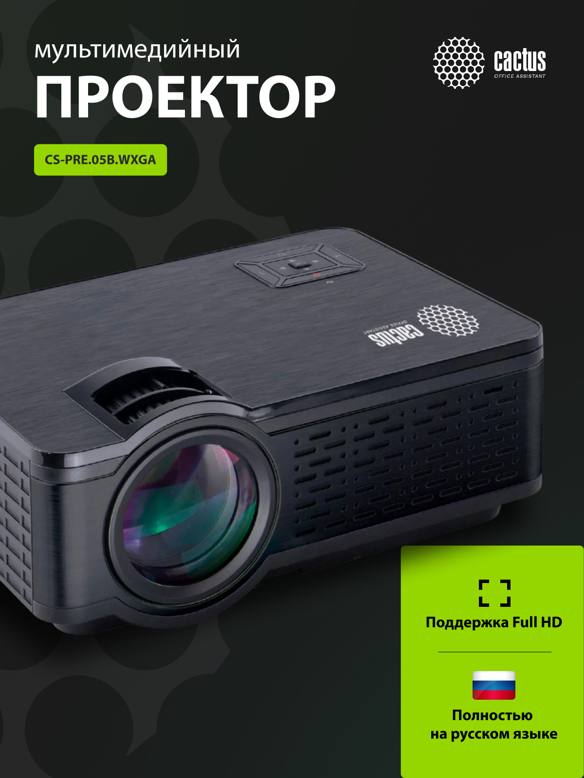 Проектор Cactus CS-PRE.05B.WXGA LCD 1800Lm LS 180Lm ANSI (1280x720) 1500:1 ресурс лампы:30000часов 1xUSB typeA 2xHDMI 1.75кг