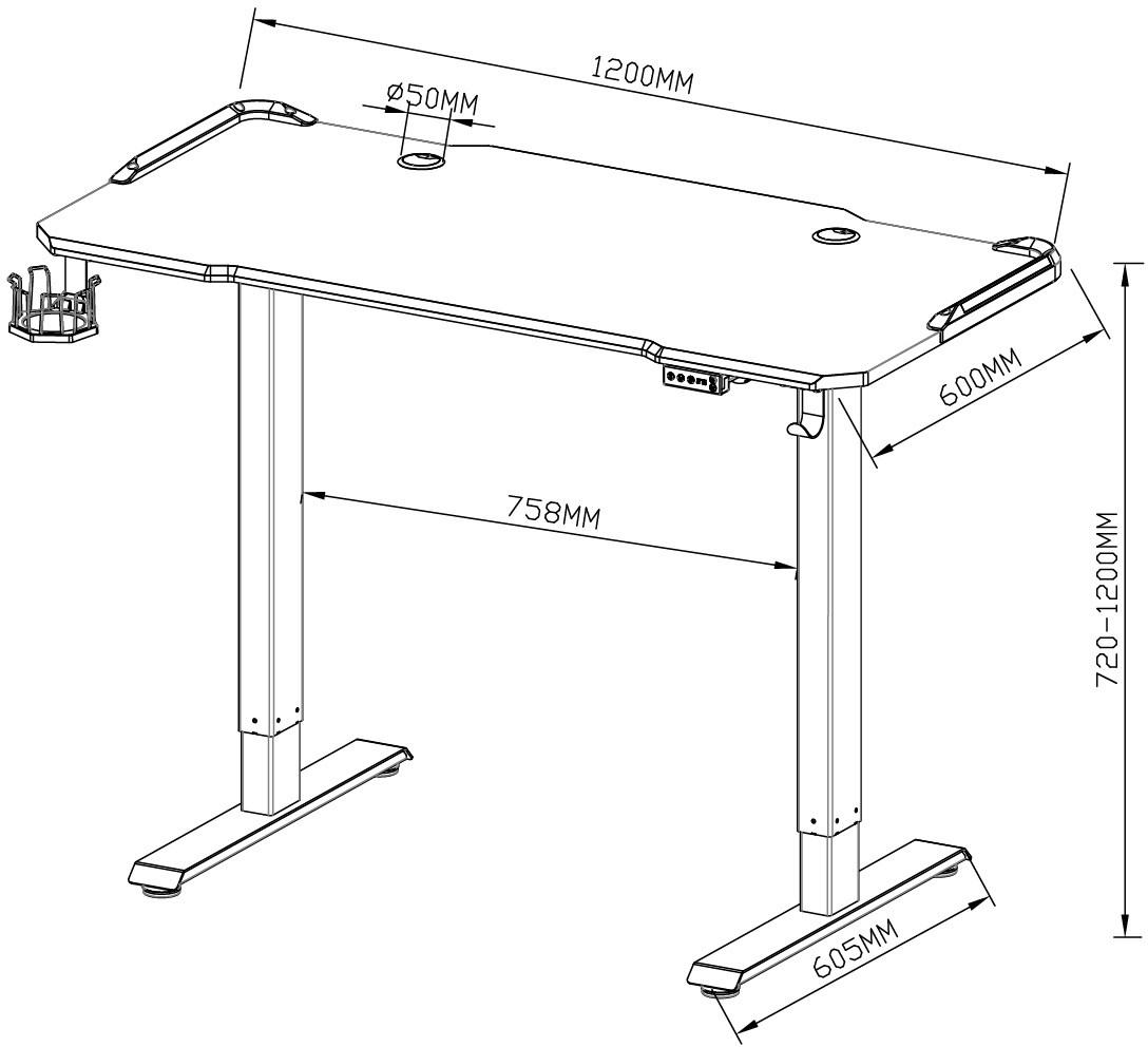 Тип: Стол компьютерный Тип стола: письменный Способ установки: стационарный Тип подъемного механизма: электропривод Форма столешницы: прямоугольная Материал основания: металл Цвет основания: черный Максимальная нагрузка: 80 кг Материал столешницы: МДФ Держатель сетевого удлинителя: ДА Крючок для наушников: ДА Подстаканник: ДА Тип питания: от сети 220 В Размеры: 120x72x60см Цвет: карбон Цвет металлического каркаса: черный Габариты упаковки (ед) ДхШхВ: 1.27x0.66x0.16 м