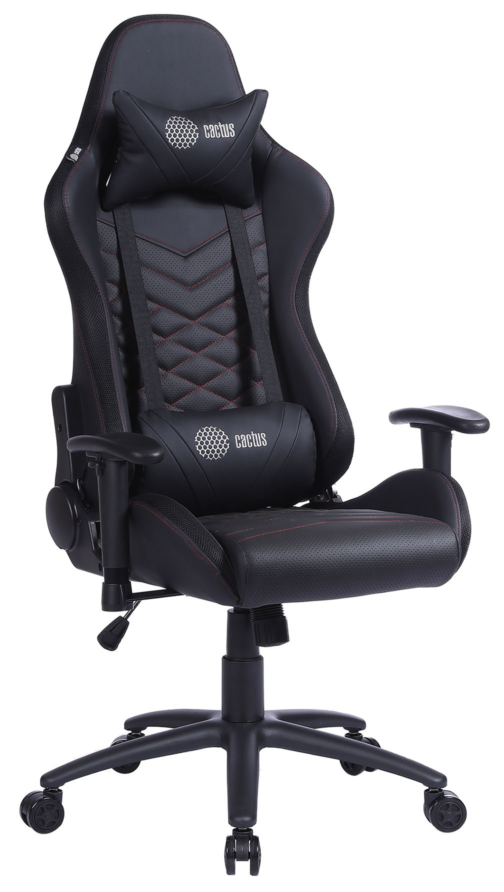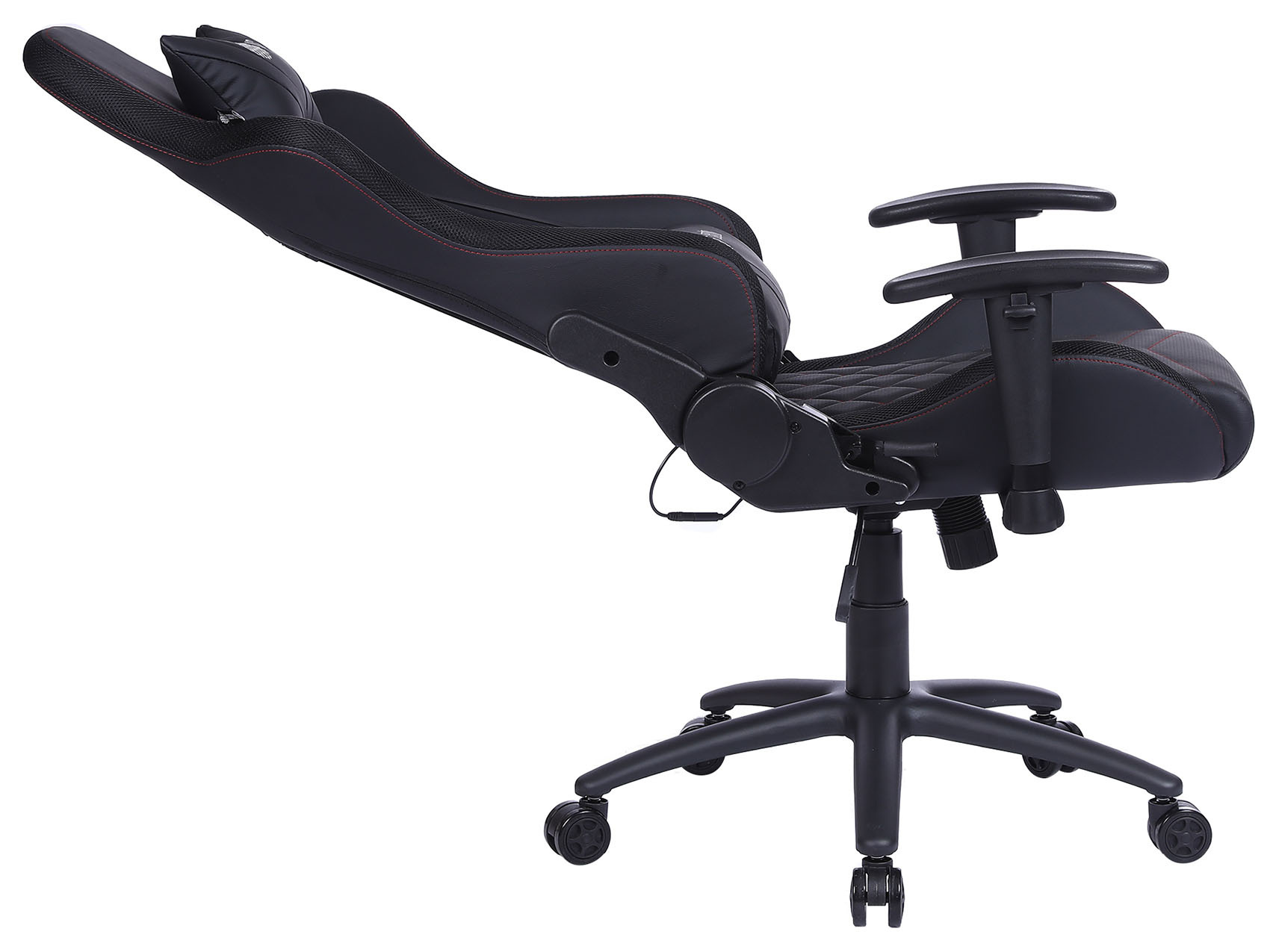 Игровое кресло эргономичной формы с дополнительной поддержкой поясницы и шеи.