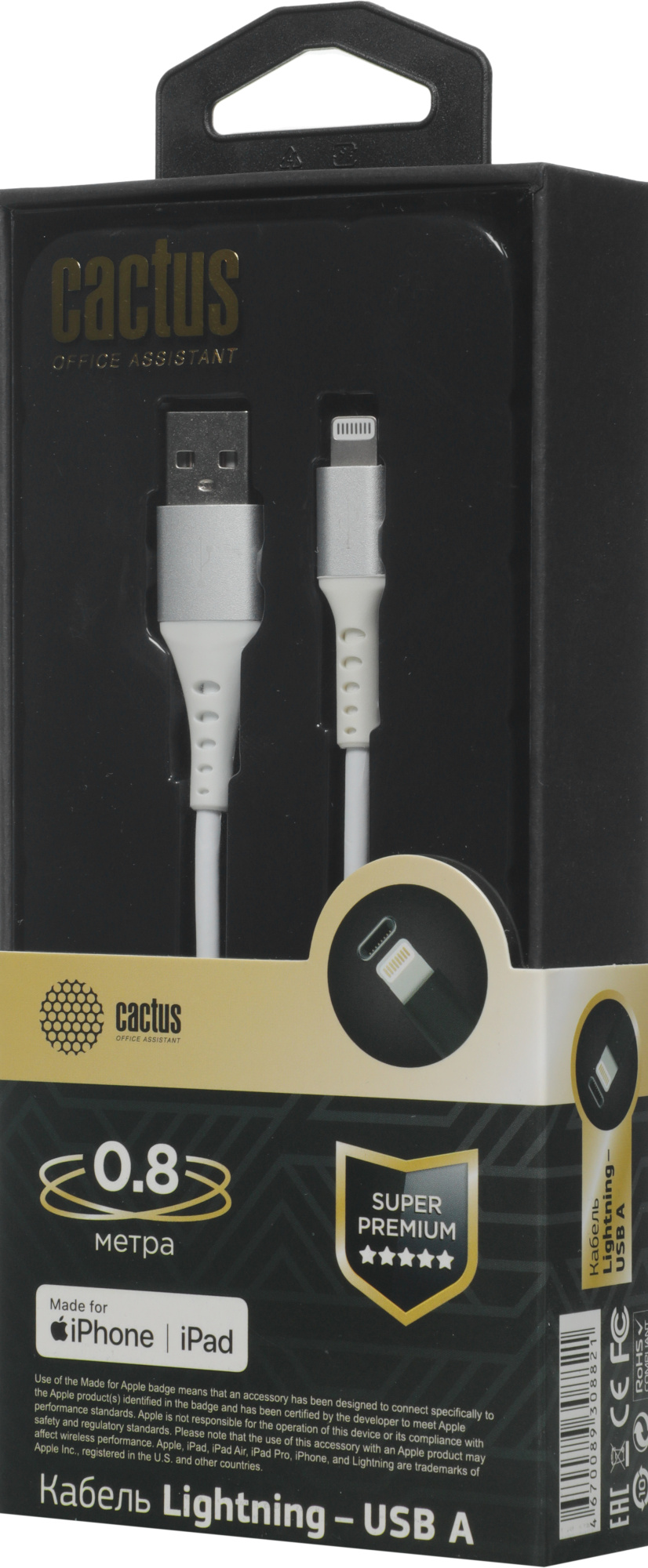 Тип: Кабель Разъем для подключения к мобильному устройству: Lightning (m) Разъем для подключения периферийного устройства: USB (m) Длина товара: 0.8 м Цвет: белый