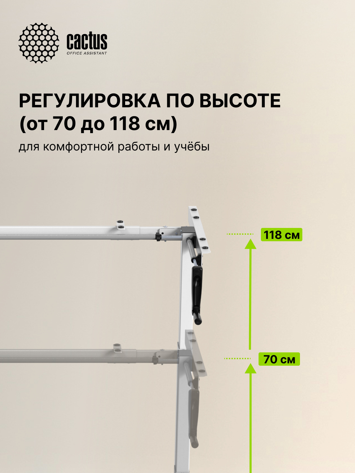 Бюджетное решение для тех, кто ценит комфорт. Подстолье для работы сидя или стоя, с ручной регулировкой высоты в диапазоне от 70 до 118 см. Складная ручка подъемного механизма не создает помех. Регулируемая ширина подстолья, от 86 до 133 см, подходит для столешниц различных форм и размеров. Рекомендуемые размеры столешницы для использования с подстольями данной серии: 100-160см по ширине и 60-75см по глубине. Регулируемая высота обеспечивает максимальный комфорт и позволяет адаптировать рабочее место под самые различные потребности. Выравнивающие ножки стола адаптируются к большинству неровных полов и поверхностей. Возможность раздельного приобретения подстолья и столешницы дает неограниченное количество вариаций, вы можете создать свой собственный стиль рабочего стола, исходя из нужных именно вам размера, формы, материала и цвета