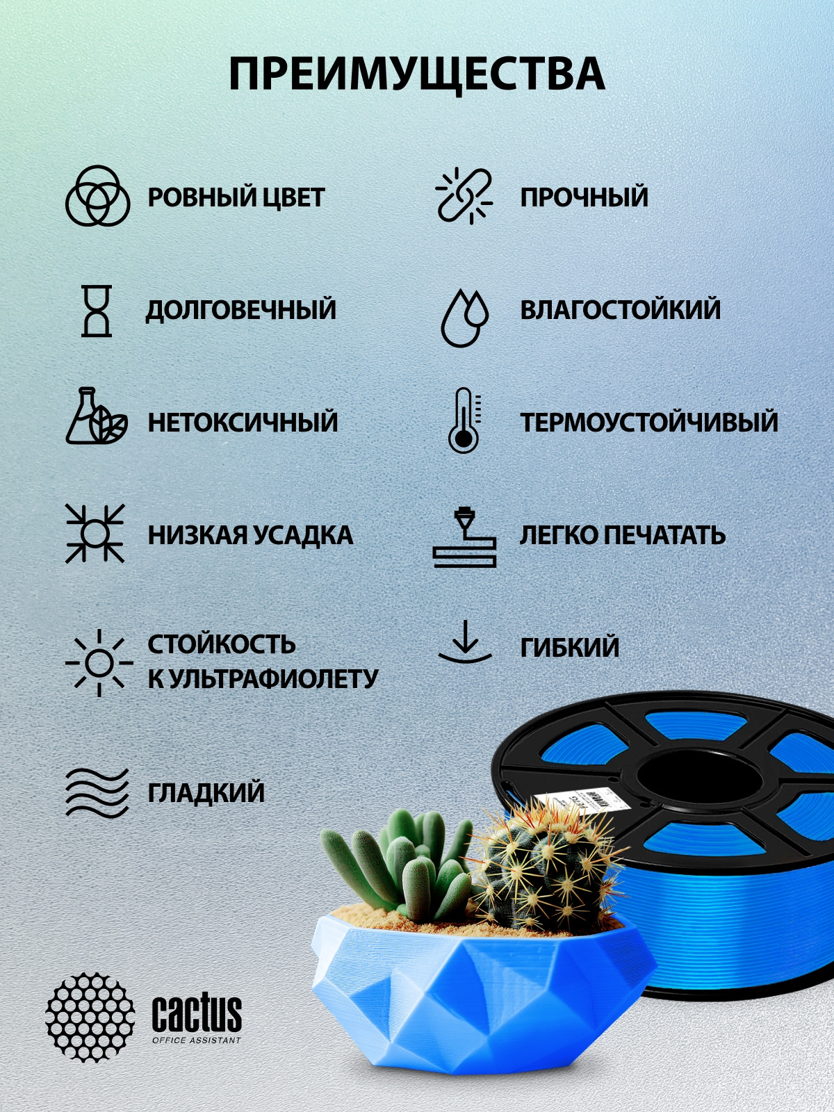 Материал пластика: PETG Диаметр пластика: 1.75 мм Длина пластика: 316 м Цвет 1: синий прозрачный Вес пластика: 1 кг
