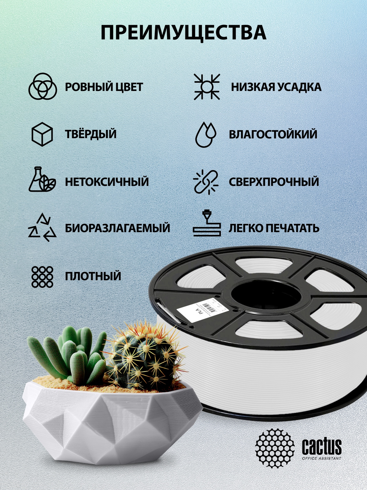 Материал пластика: PLA Диаметр пластика: 1.75 мм Длина пластика: 326 м Цвет 1: белый Вес пластика: 1 кг