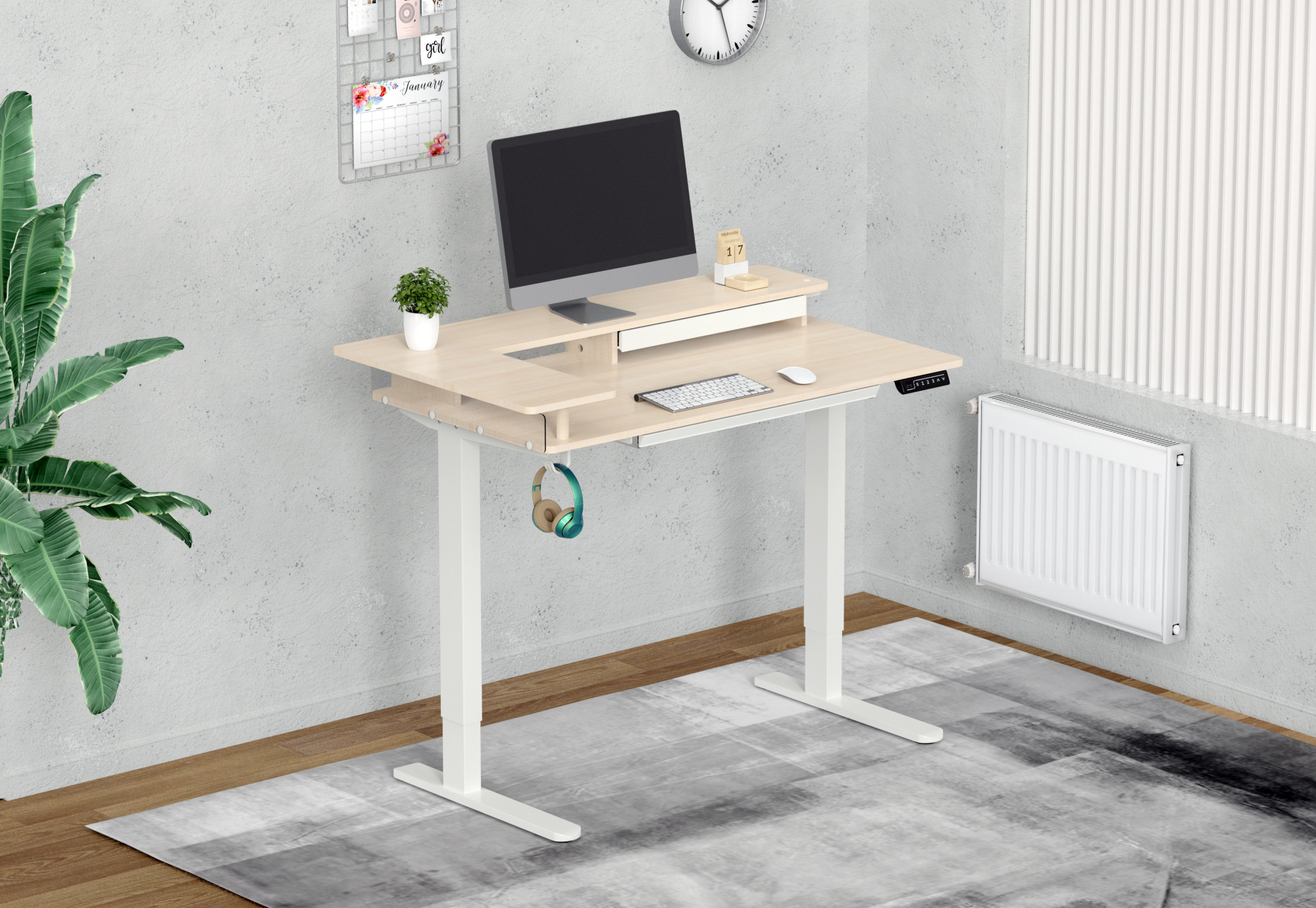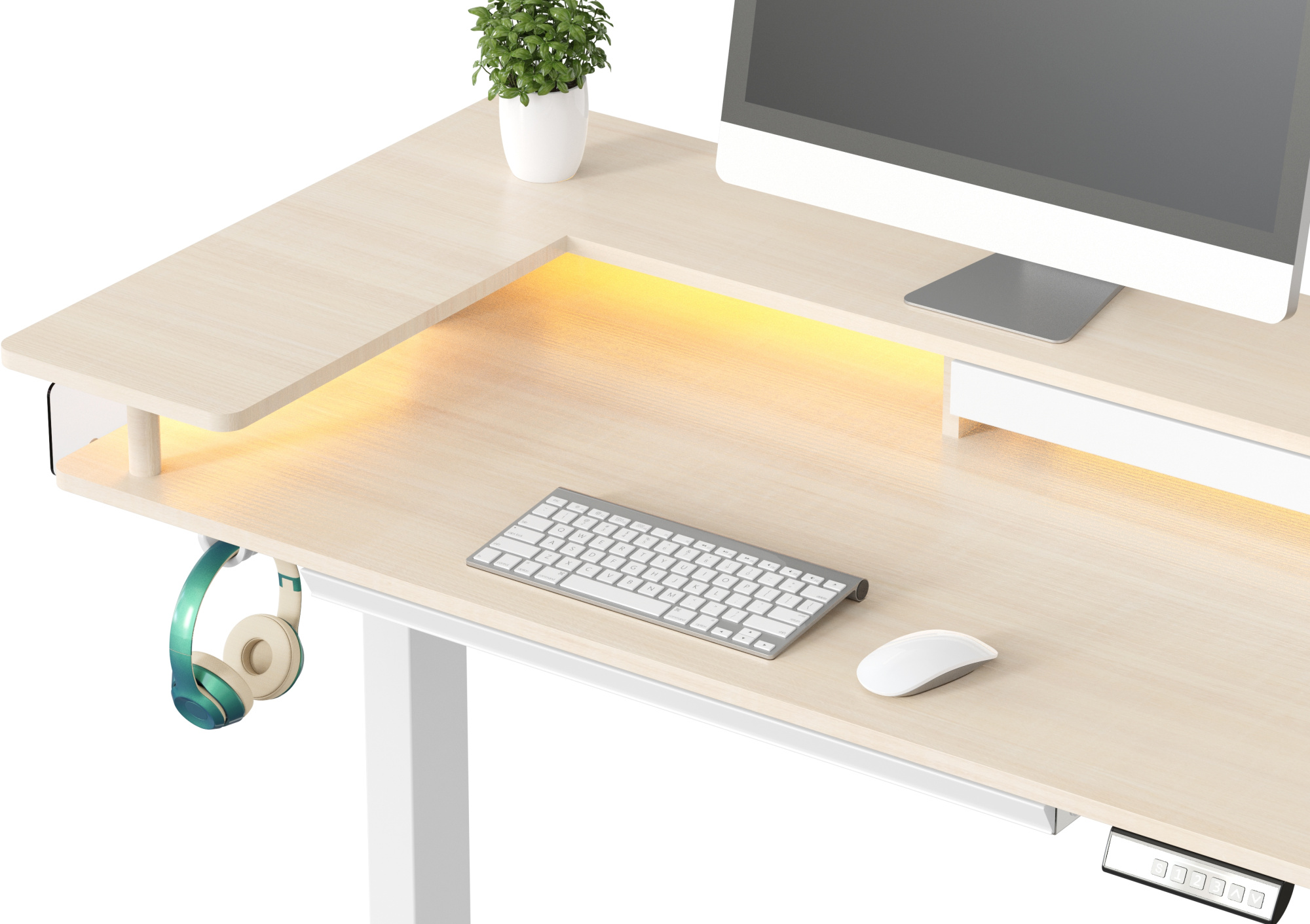 Тип: Стол компьютерный Тип стола: письменный Способ установки: стационарный Тип подъемного механизма: электропривод Форма столешницы: прямоугольная Материал основания: металл Цвет основания: белый Максимальная нагрузка: 70 кг Материал столешницы: ДСП Крючок для наушников: ДА Тип питания: от сети 220 В Размеры: 120x72x60см Цвет: светлый дуб Цвет металлического каркаса: белый Габариты упаковки (ед) ДхШхВ: 1.295x0.705x0.165 м