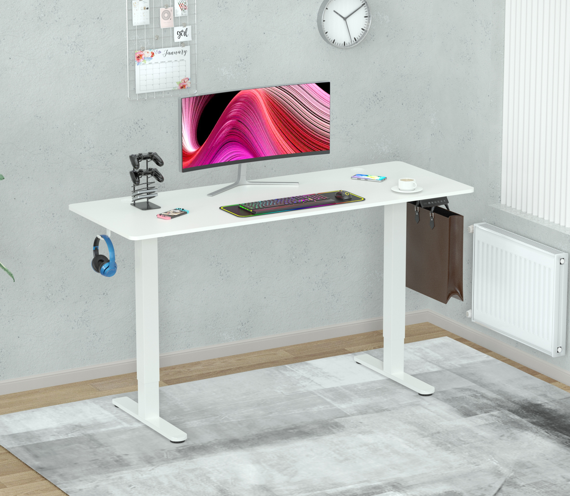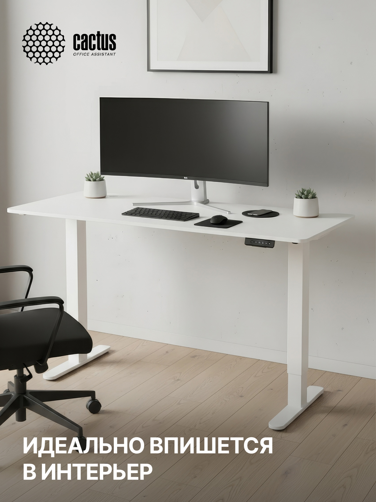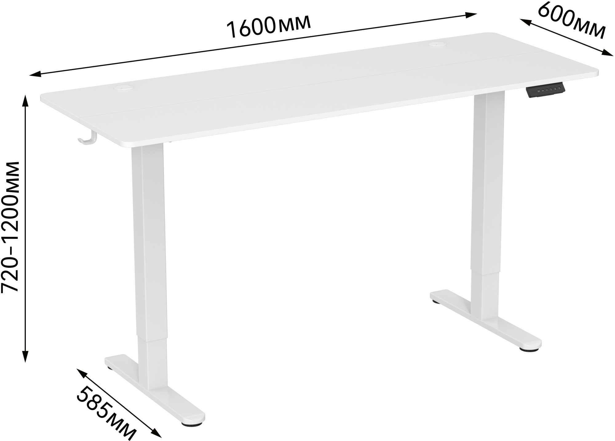 Тип: Стол компьютерный Тип стола: письменный Способ установки: стационарный Тип подъемного механизма: электропривод Форма столешницы: прямоугольная Материал основания: металл Цвет основания: белый Максимальная нагрузка: 80 кг Материал столешницы: ДСП Крючок для наушников: ДА Тип питания: от сети 220 В Размеры: 160x72x60см Цвет: белый Цвет металлического каркаса: белый Габариты упаковки (ед) ДхШхВ: 1.645x0.34x0.175 м