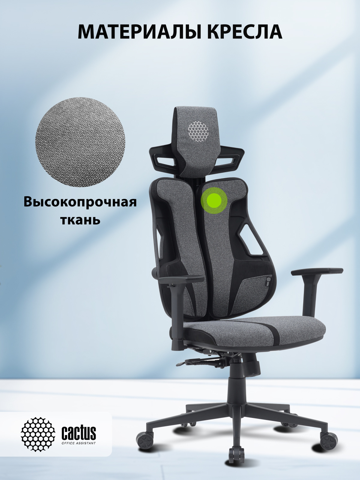 Кресло Cactus CS-CHR-DUO-GYBK серый/черный с подголов. крестов. сталь пластик черный