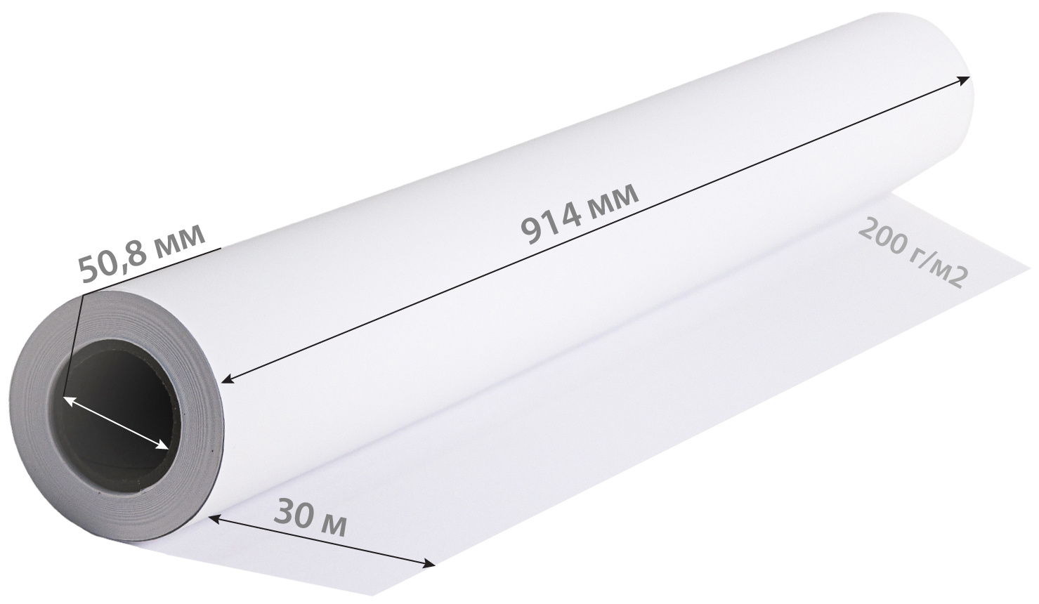 Бумага Cactus CS-PC200-91430 36"(A0) 914мм-30м/200г/м2/белый матовое универсальная (с покрытием) втулка:50.8мм (2")