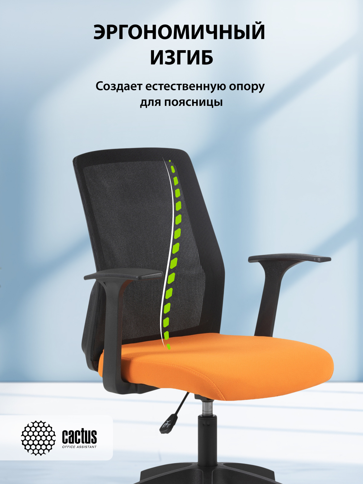 Офисное кресло CS-MC222-BKOR просто создано для поддержания комфортных условий для работы. Спинка кресла из прочной сетчатой ткани повторяет анатомические изгибы спины, помогает сохранить правильную посадку и снимает нагрузку с мышц. Т-образные подлокотники создают дополнительное удобство для пользователя. Эта модель может одинаково успешно использоваться для оснащения рабочих мест в салонах красоты, офисных пространств или детской комнаты – яркая оранжевая обивка сиденья придаст недостающий акцент обстановке.