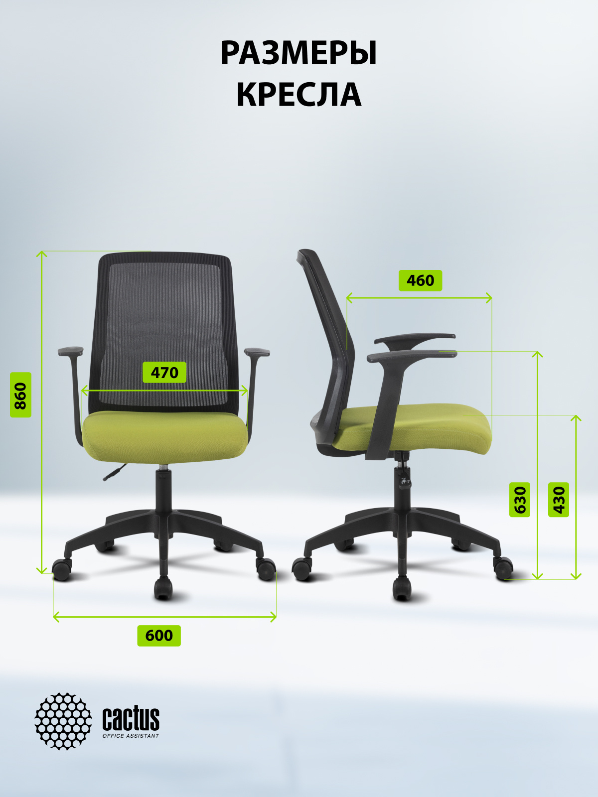 Тип: Кресло Цвет (сиденье): салатовый Цвет (спинка): черный Материал обивки: сетка/ткань Подлокотники: ДА Ограничение по весу: 100 кг Класс газлифта: 2 Диаметр креста: 600 мм Высота спинки: низкая спинка Высота кресла/стула MIN: 860 мм Высота сиденья MIN: 430 мм Высота с подлокотниками MIN: 630 мм Глубина сиденья MIN: 460 мм Ширина с подлокотниками: 560 мм Ширина сиденья: 470 мм Габариты упаковки (ед) ДхШхВ: 0.61x0.225x0.56 м