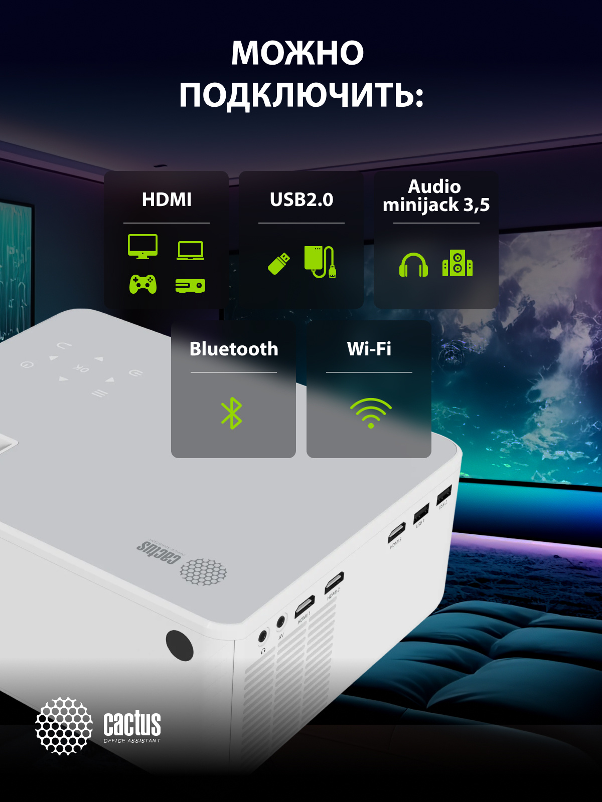 Проектор Cactus CS-PRM.04WT.WUXGA-A LCD 10000Lm LS 450Lm ANSI (1920x1080) 2000:1 ресурс лампы:50000часов 2xUSB typeA 3xHDMI 2.5кг