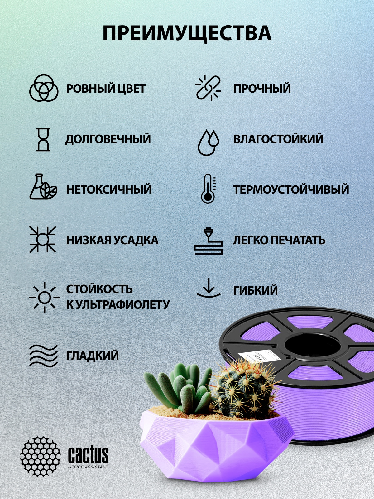 Материал пластика: PETG Диаметр пластика: 1.75 мм Длина пластика: 316 м Цвет 1: фиолетовый Вес пластика: 1 кг