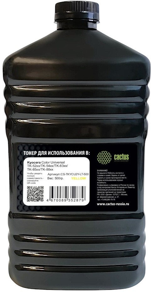 Тонер Cactus CS-TKYCU2Y-LT-500 желтый флакон 500гр. для принтера Kyocera Color Universal TK-52xx/TK-54xx/TK-83xx/TK-85xx/TK-88xx