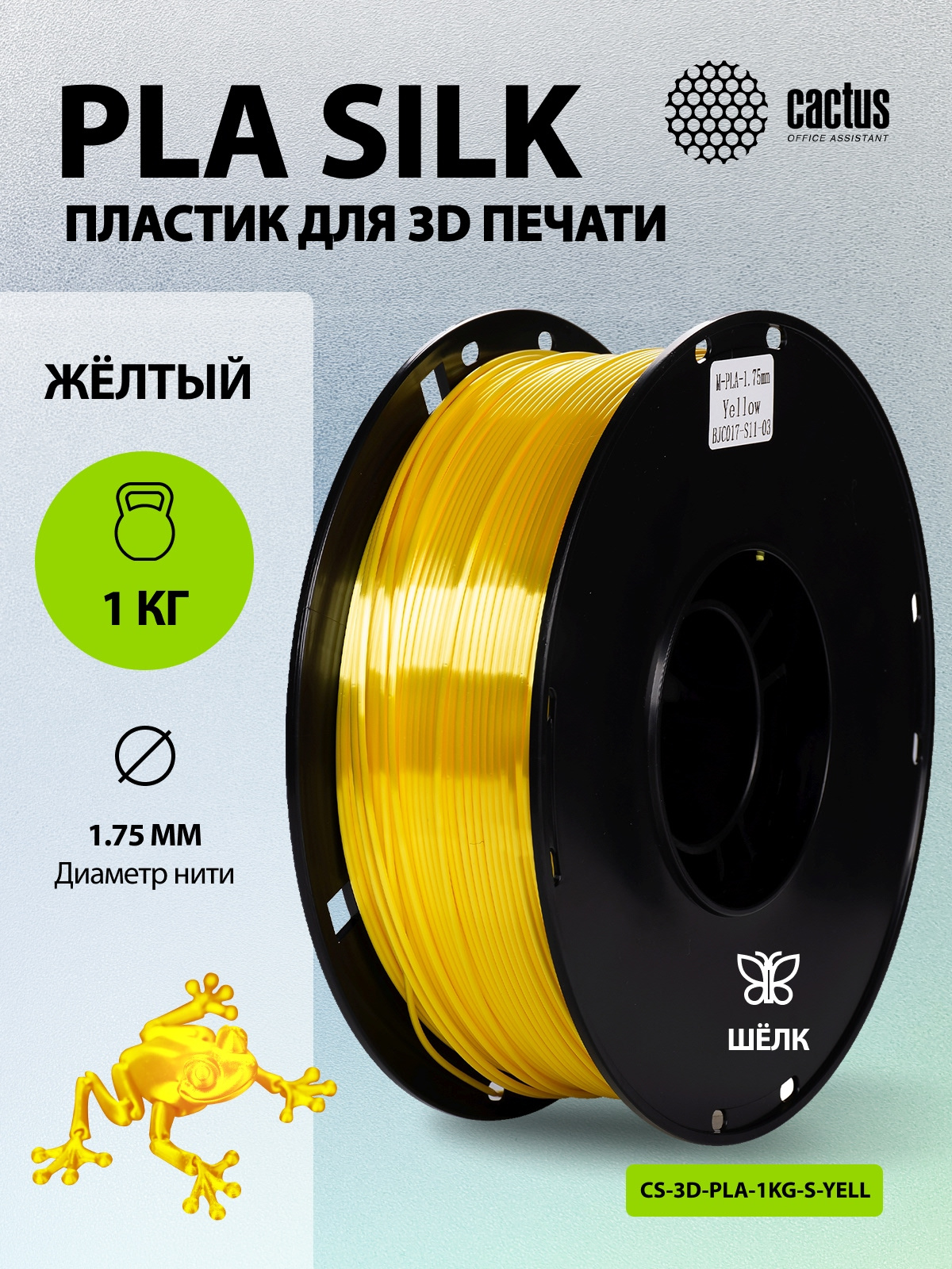 Пластик для принтера 3D Cactus CS-3D-PLA-1KG-S-YELL PLA SILK d1.75мм 1кг L326м 1цв.