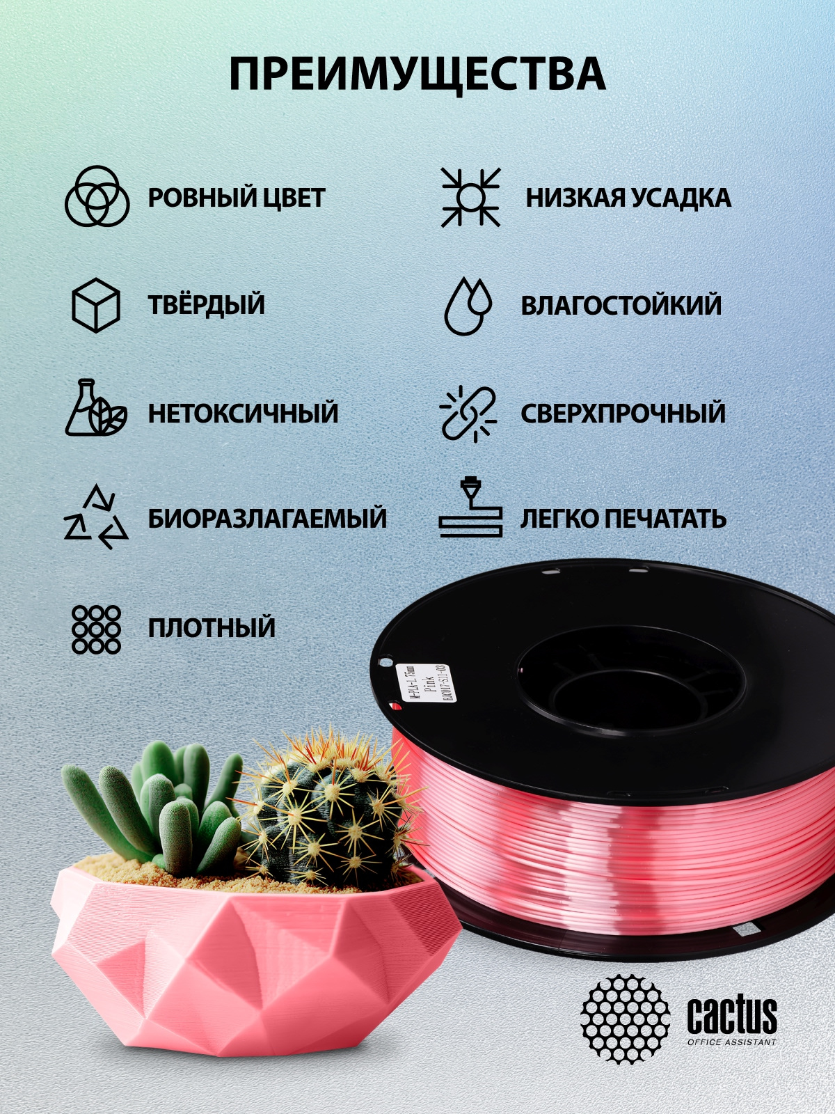 Пластик для принтера 3D Cactus CS-3D-PLA-1KG-S-PINK PLA SILK d1.75мм 1кг L326м 1цв.
