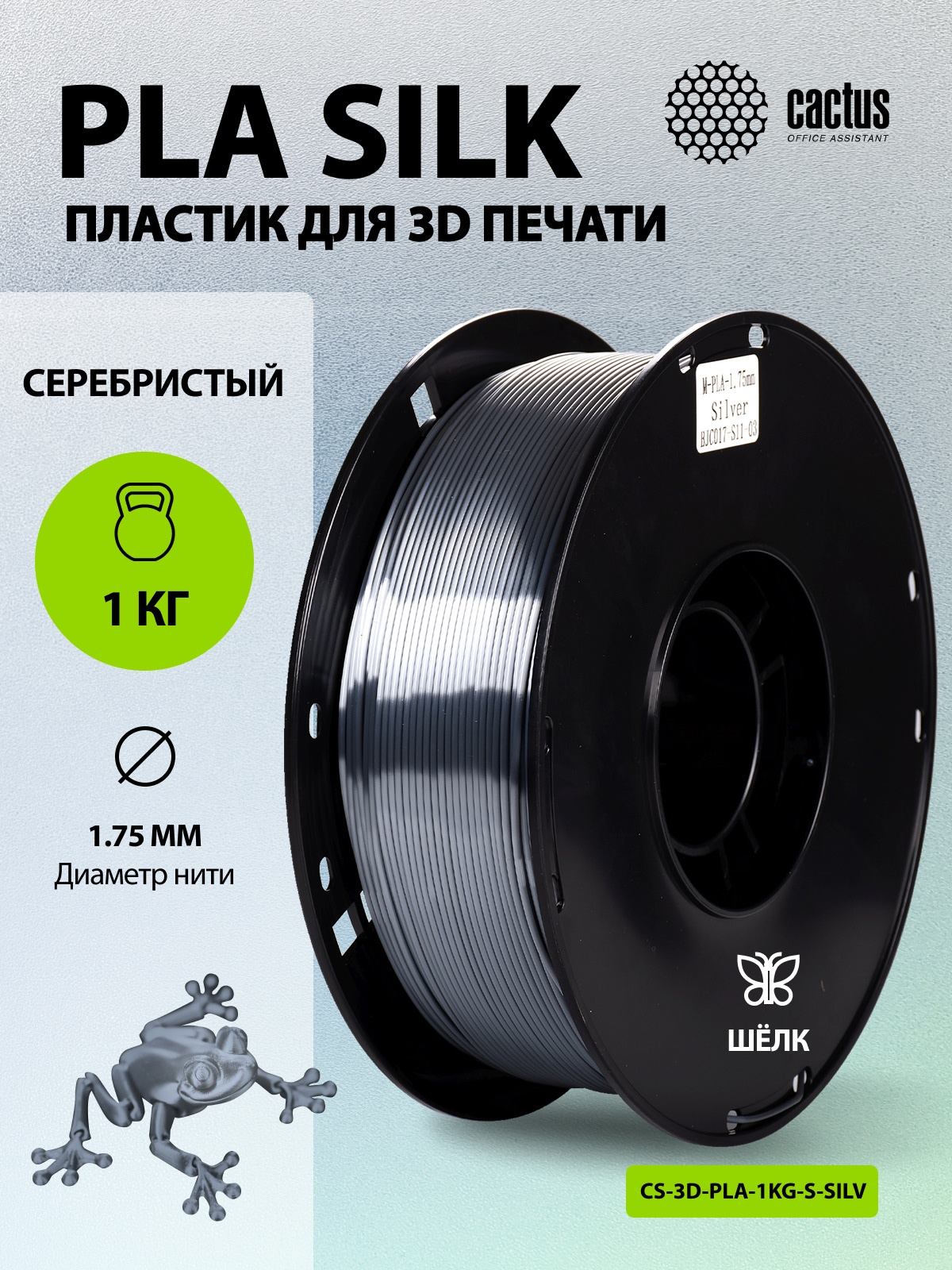 Пластик для принтера 3D Cactus CS-3D-PLA-1KG-S-SILV PLA SILK d1.75мм 1кг L326м 1цв.