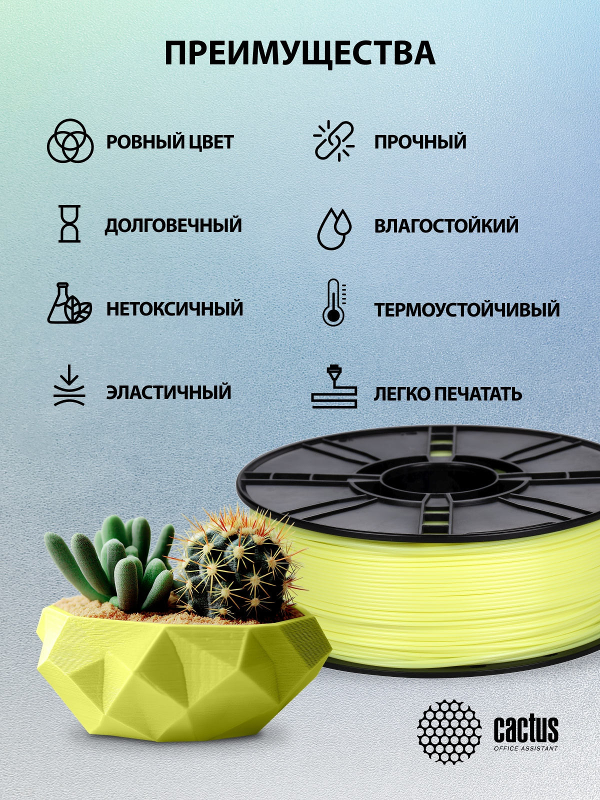 Пластик для принтера 3D Cactus CS-3D-ABS-1KG-L-YELL ABS LUMINOUS d1.75мм 1кг 1цв.