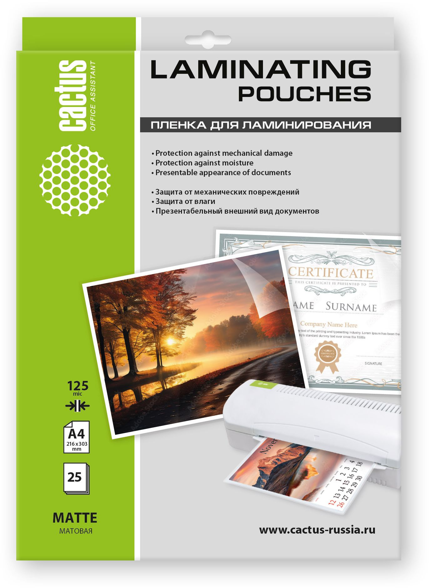 Пленка для ламинирования Cactus 125мкм A4 (25шт) матовая 216x303мм CS-LPMА412525