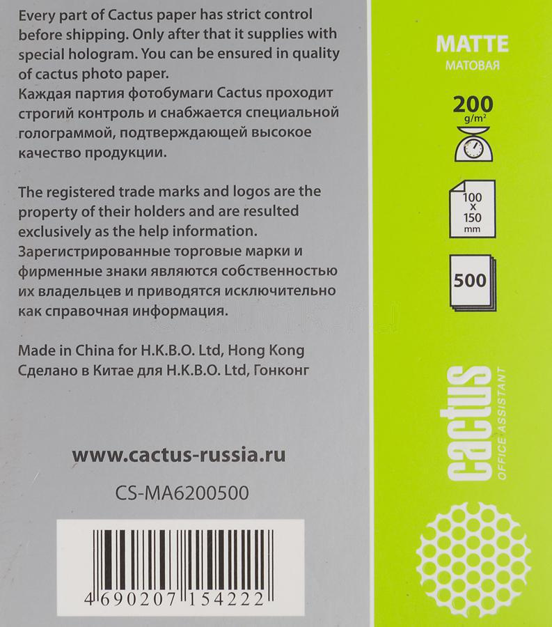 Количество листов в пачке: 500 Количество пачек в упаковке: 1 Плотность: 200 г/м2 Покрытие первой стороны: матовое Цвет: белый Стандартный формат: A6