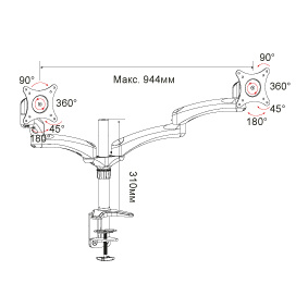 Способ регулировки: поворот и наклон Установка: настольный Максимальный вес оборудования: 8 кг Макс. диагональ: 27 " Мин. диагональ: 15 " Угол наклона: -90/+45 ° Угол поворота: 180 ° Цвет: черный Особенности: Пластина, штанга и зажимная скоба сделаные из стали, остальные части кронштейна из алюминия