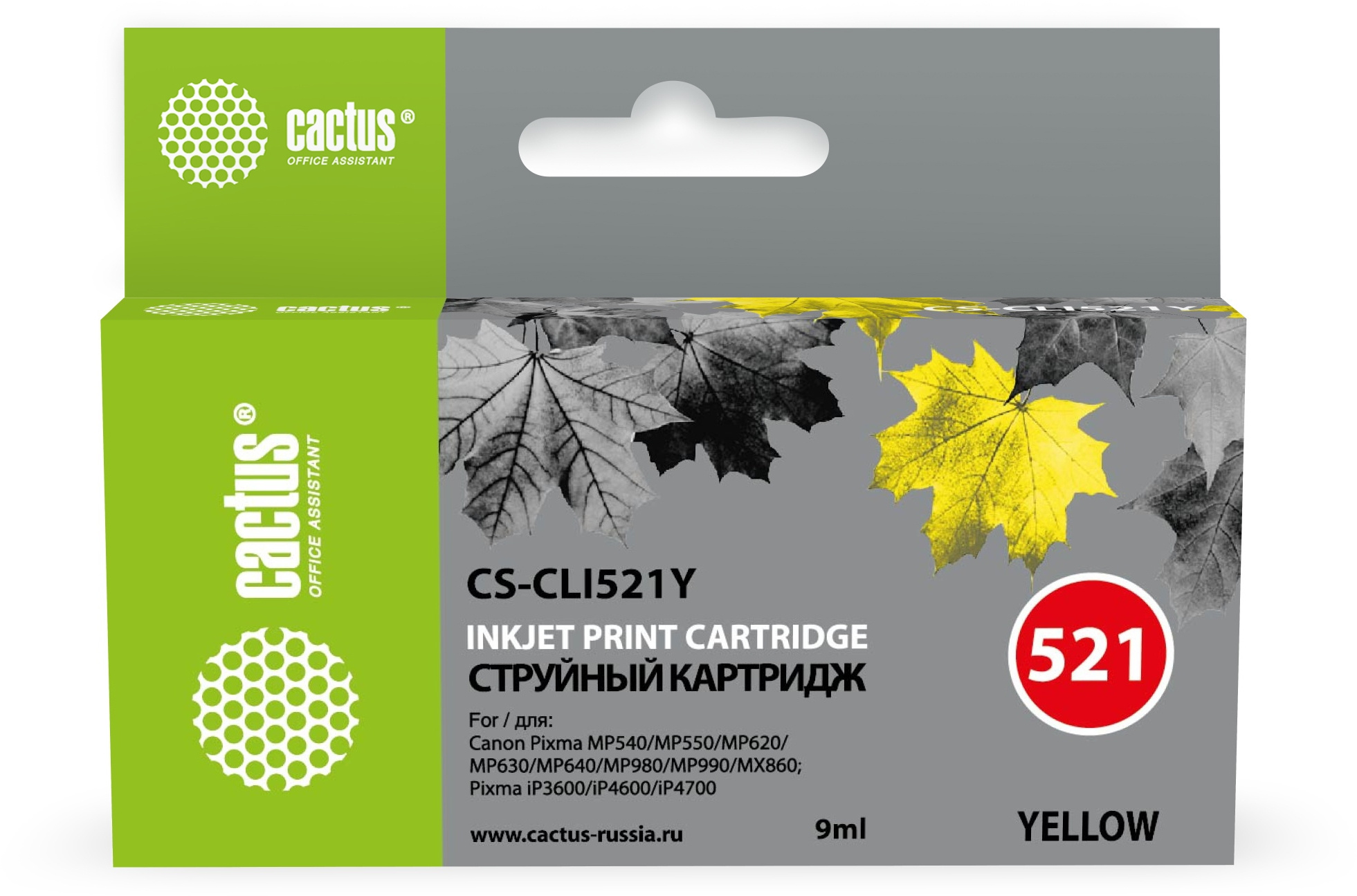 Картридж струйный Cactus CS-CLI521Y желтый (9мл) для Canon Pixma MP540/MP550/MP620/MP630/MP640/MP660/MP980/MP990/iP3600/iP4600/iP4700/MX860 с чипом