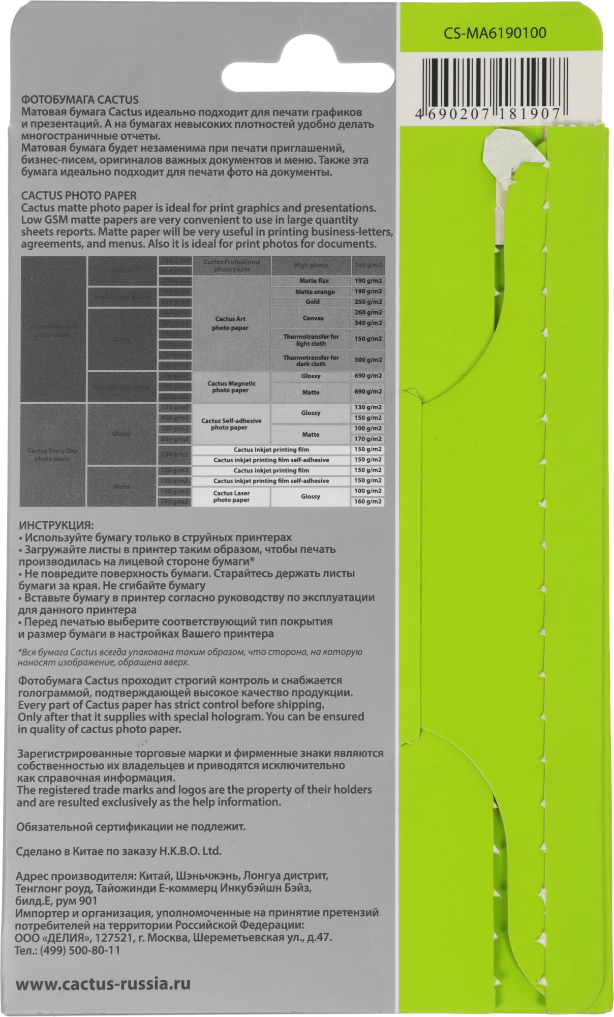 Количество листов в пачке: 100 Количество пачек в упаковке: 1 Плотность: 190 г/м2 Покрытие первой стороны: матовое Цвет: белый Стандартный формат: A6