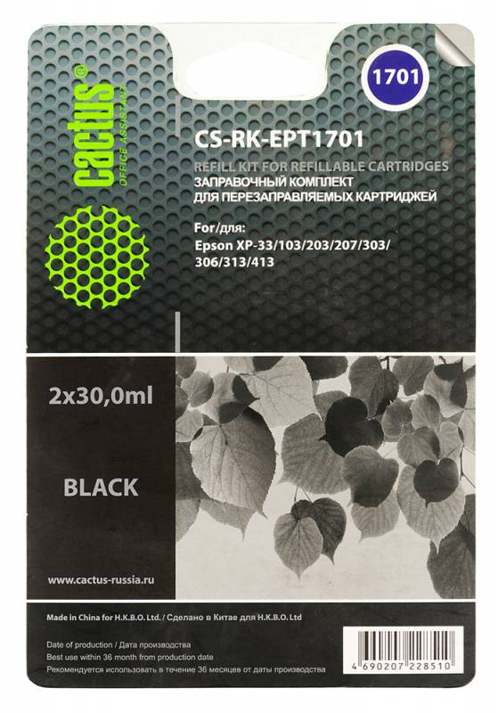 Заправка для ПЗК Cactus CS-RK-EPT1701 черный 60мл для Epson Ho XP33