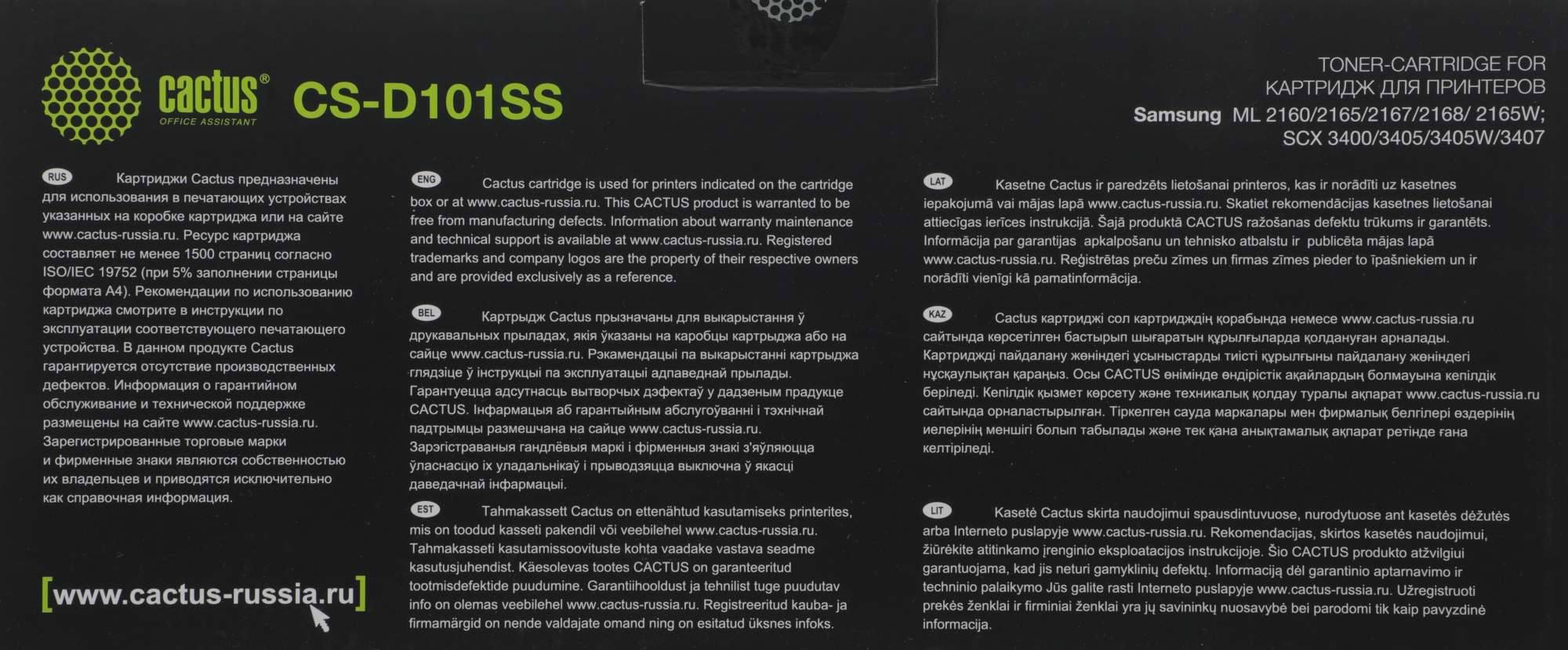Чип: с чипом Тип: Картридж Назначение: для лазерных принтеров/МФУ Модель оригинального картриджа: MLT-D101S Производитель печатающих устройств: SAMSUNG